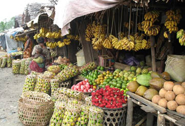 pink rose-apples, red hairy rambuttans and huge jackfruit.