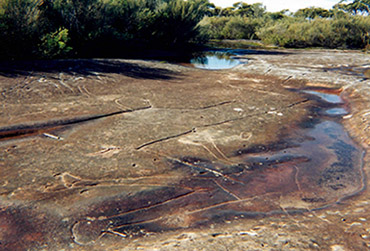 shows me aborigine engravings carved into the ground -