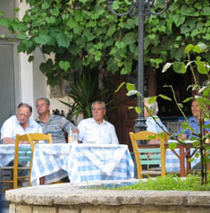 frappés and Samos’s famously delicious spring water. Old men
