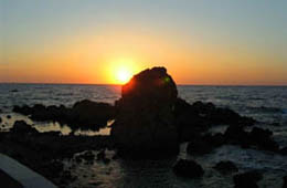 or multi-coloured shingle, lapped by limpid waves. After