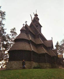 a hill stands a 12th century stave church – one of only 29